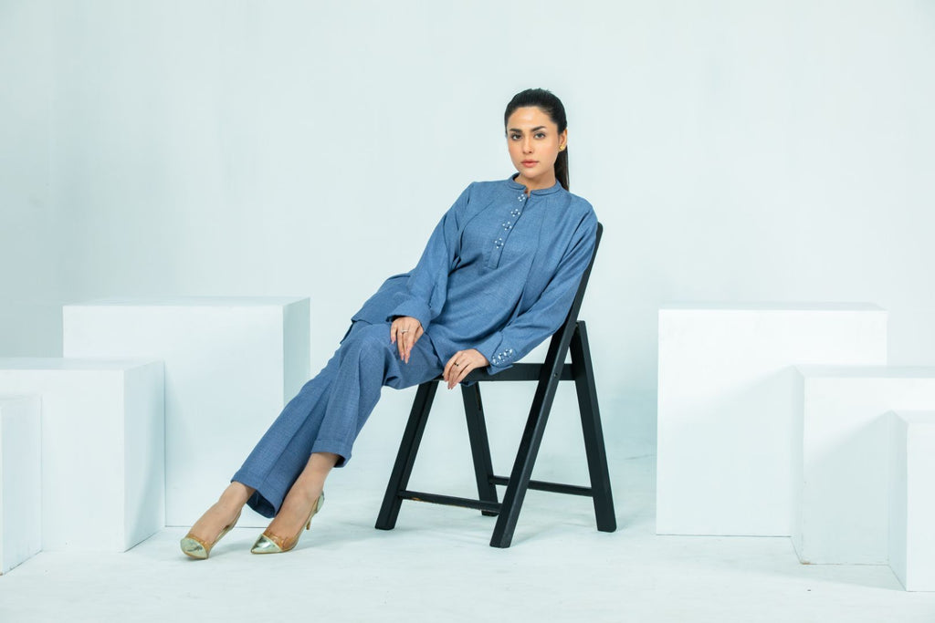 Effortless style meets everyday comfort with the Indigo Denim Co-ord by Raya Attire — a modern two-piece set designed in rich indigo blue. Crafted from premium lightweight denim, this outfit features a relaxed shirt and matching wide-leg trousers that deliver structure with freedom of movement. Perfect for casual days, travel,...